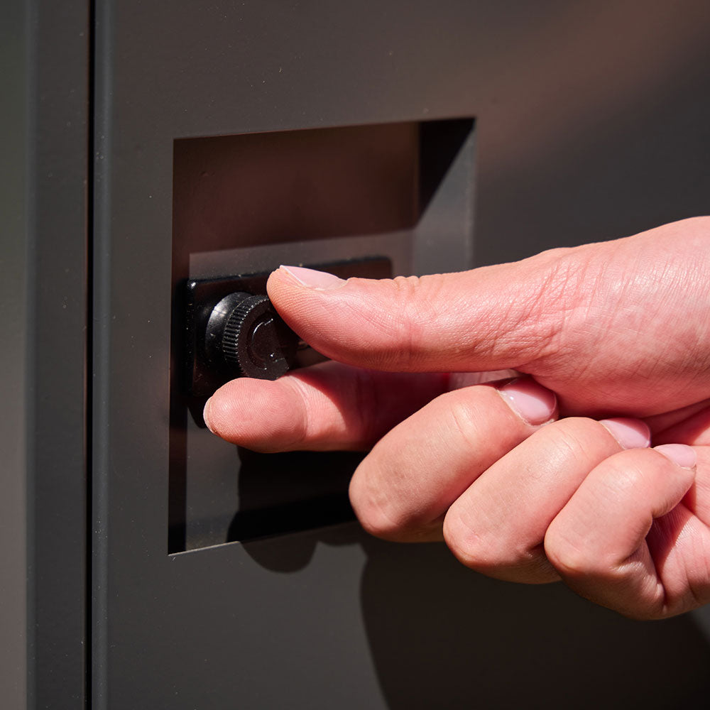 Finished in a matte, powder-coated exterior with clean vertical panel detailing, the Empire offers lockable combination access, a padded internal base to protect fragile deliveries, and a flat front for house number display. Whether you're at home or away, rest easy knowing your parcels are protected.